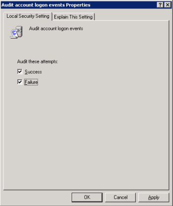 Figure 64. Audit Policy properties dialog on Windows 2003