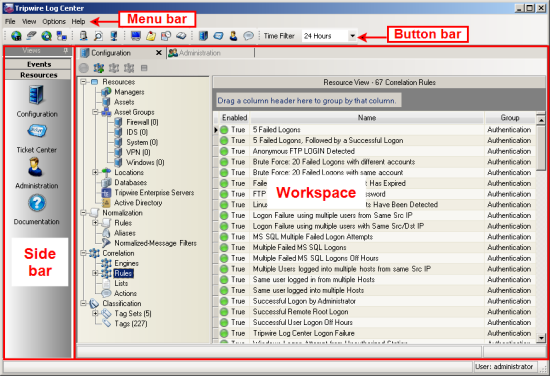 The Tripwire Log Center (TLC) Console is the graphical user interface (GUI) for TLC. Through the console, you configure TLC, oversee your TLC environment, and manage log and event data.