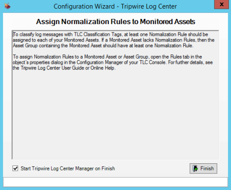 | b. | Select Start Tripwire Log Center Manager on Finish and click Finish. |