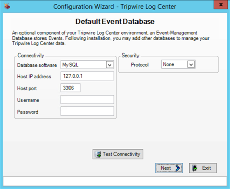 To verify your settings, click Test Connectivity. If the connection fails, double-check the values entered in the Connectivity region (see Table 3) and verify that your Event-Management Database software is running. |