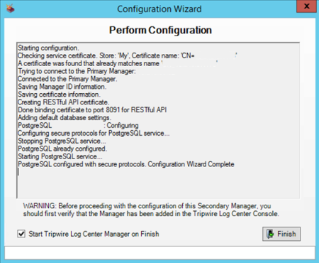 | 8. | Upon completion of the installation process, select Start Tripwire Log Center Manager on Finish and click Finish (see Figure 24). |