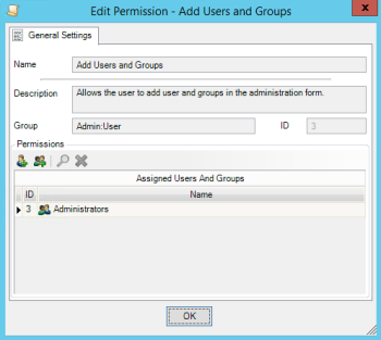 To add or remove the permission to/from users and groups, double-click the permission. The Edit Permission dialog opens (see Figure 52).