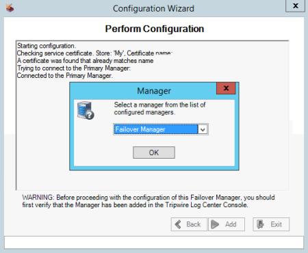 | 6. | From the drop-down in the Manager dialog (see Figure 28), select the Failover Manager (created in Step 1. Adding a Failover Manager in the TLC Console). |